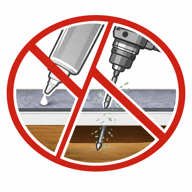 Die Regale werden weder verklebt und auch nicht die Wände verschraubt.
